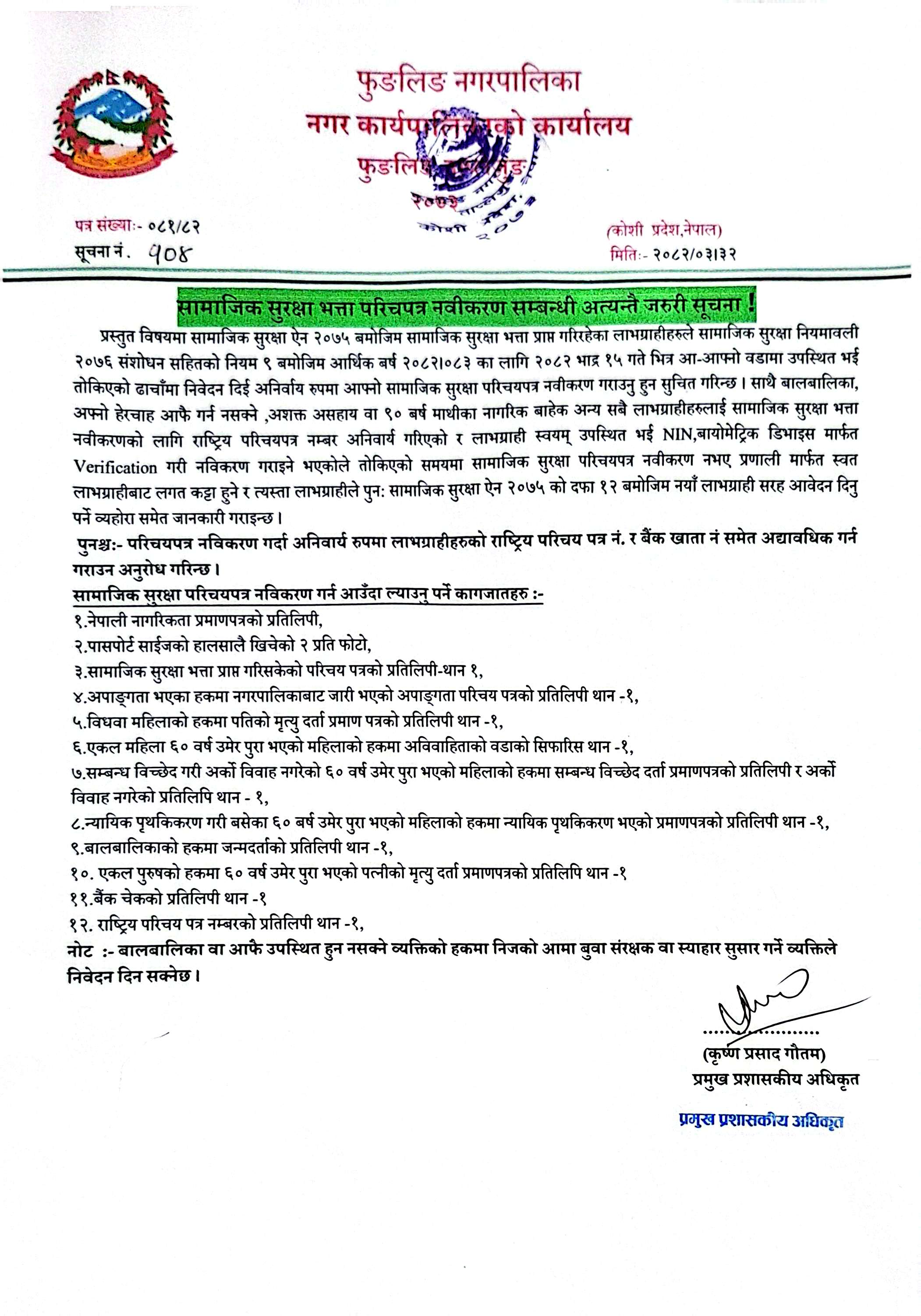 Home » सामाजिक सुरक्षा भत्ता परिचयपत्र नवीकरण सम्बन्धी अत्यन्तै जरुरी सूचना ।