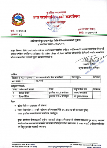आवेदन स्वीकृत तथा परीक्षा मिति तोकिएको सम्बन्धी सूचना !!!